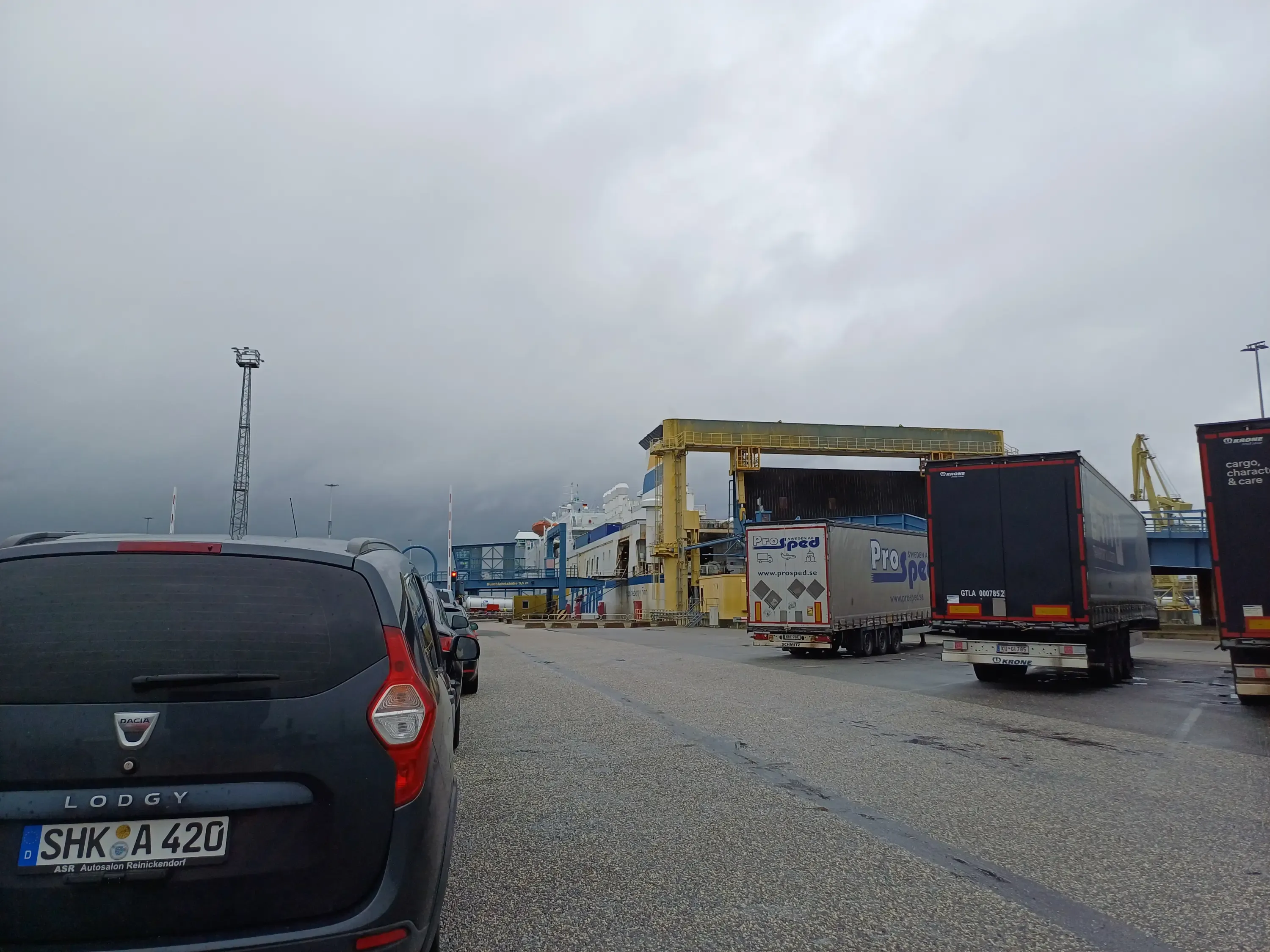 Leider hat man uns aufgrund technischer Probleme die eigendliche Fähre gestrichen. Es sollte ursprünglich in der Nacht von Travemünde losgehen. Als kurzfristige Alternative wurde eine Verbindung ab Rostock angeboten.